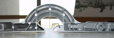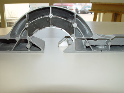 To fix it, I band-sawed two cuts into the curved part of the fence, clamped it to a flat surface, taped the cuts and filled the cavities with Rapid Repair. I placed two roofing nails across each cut to add strength.
