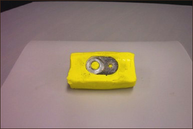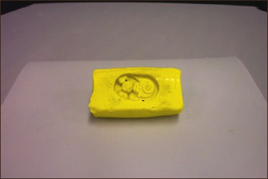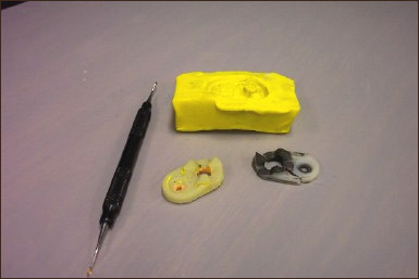 The broken pieces are carefully put togther and depressed in some plastesine to make a negative mold of the part.