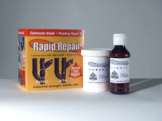 Originally developed as a hoof repair for animals 27 years ago, Rapid Repair has been refined into an exceptionally strong adhesive that can be used to repair a multitude of broken materials in a matter of minutes. The result is a strong waterproof repair. RR goes from a two part mixture to a cured finished product in 5 to 8 minutes. It can be colored while mixing in the slurry stage; hand molded in the putty stage into replacement parts, sanded, machined and painted when cured. It has the unique ability to chemically bond to most plastics which results in an extremely strong repair. RR has been tested under extreme conditions (-10 degrees to 200 degrees F and up to 600 psi.) and retains its integrity to bond. RR can also be used on wood, metal and rock.
